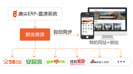 04网站与鼎尖系统集成通过鼎尖系统可以进行房源、小区、等全部后台管理,同时可将房源数据不仅发送到安居客等各大房产网站,并同步到网站和微站平台上! |